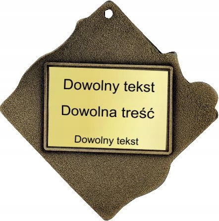 Tył medalu widoczny na zdjęciu obok z przykładową tabliczką z laminatu grawerskiego w kolorze medalu.