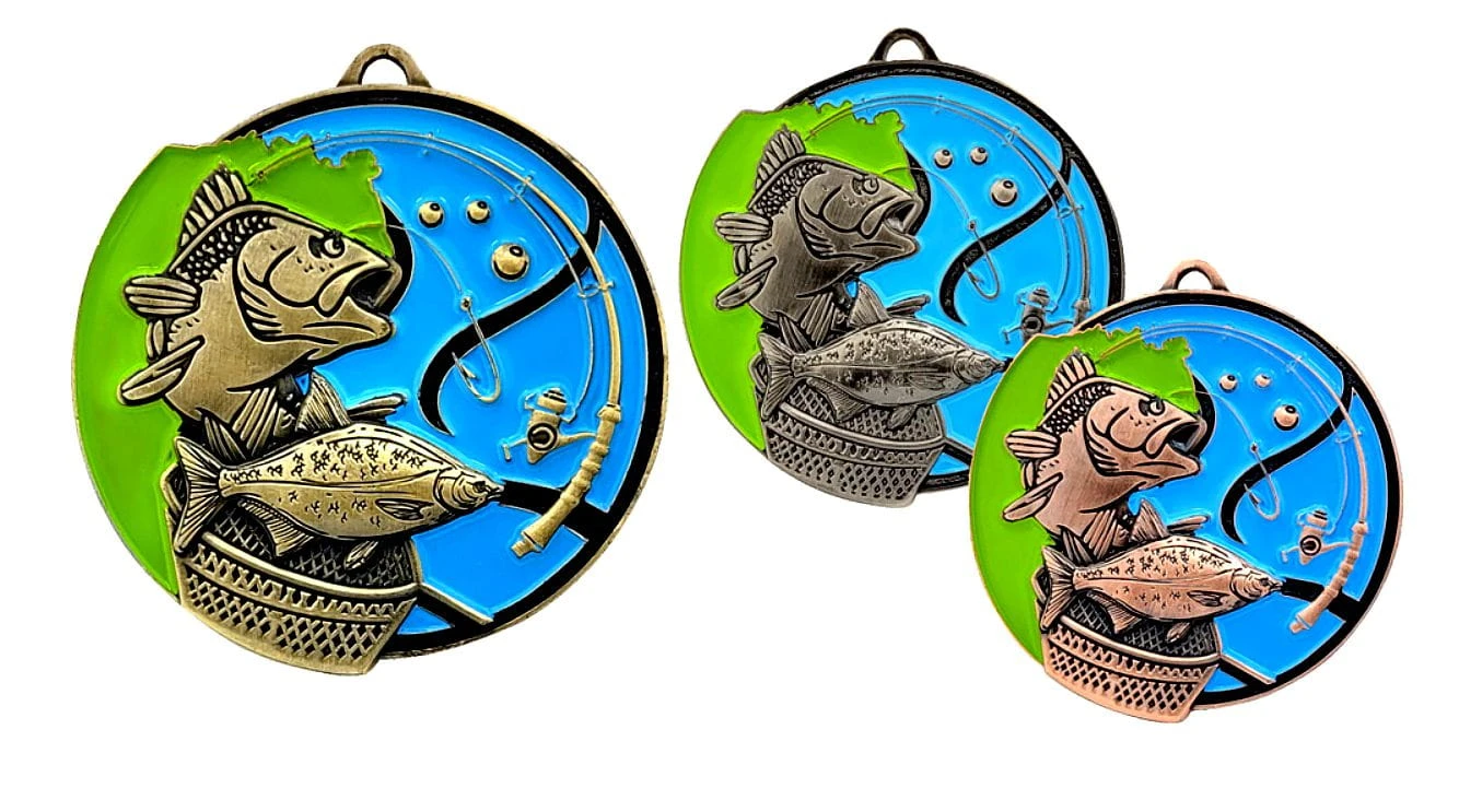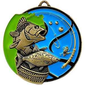 Duży odlewany MEDAL 3D - wędkarz M102. GRAWER