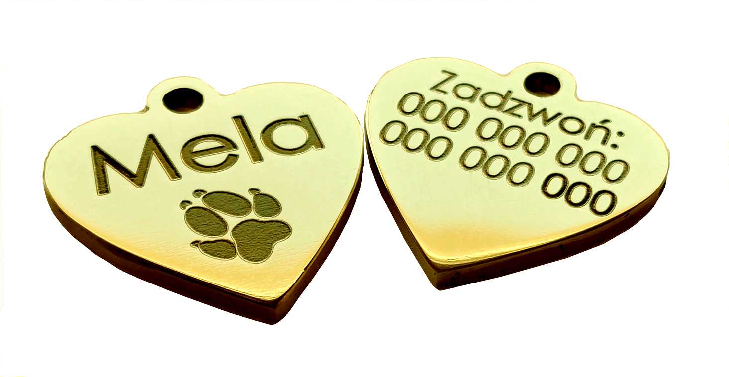 Wystarczy wybrać rozmiar i kształt, podać imię, numer telefonu i/lub adres (możemy dodać proste symbole typu serduszko, łapka, itp.)