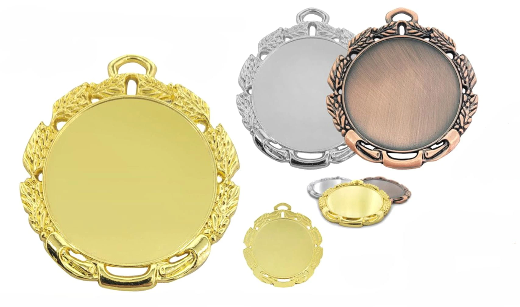 w kolorze złotym, srebrnym lub brązowym o średnicy 7cm i 2mm grubości