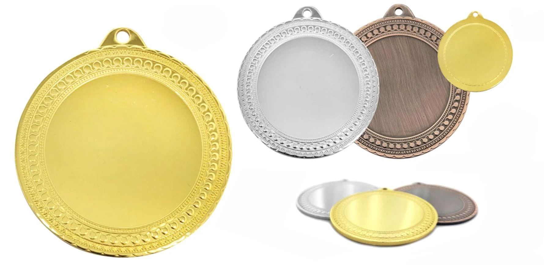 w kolorze złotym, srebrnym lub brązowym o średnicy 7cm i 2mm grubości