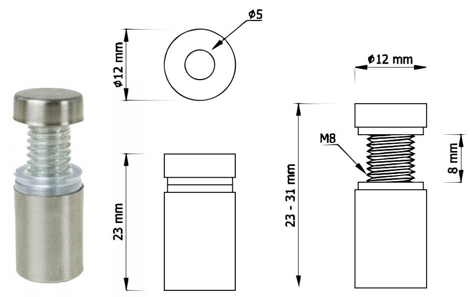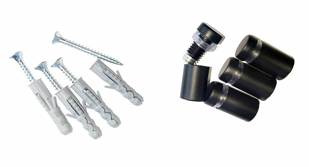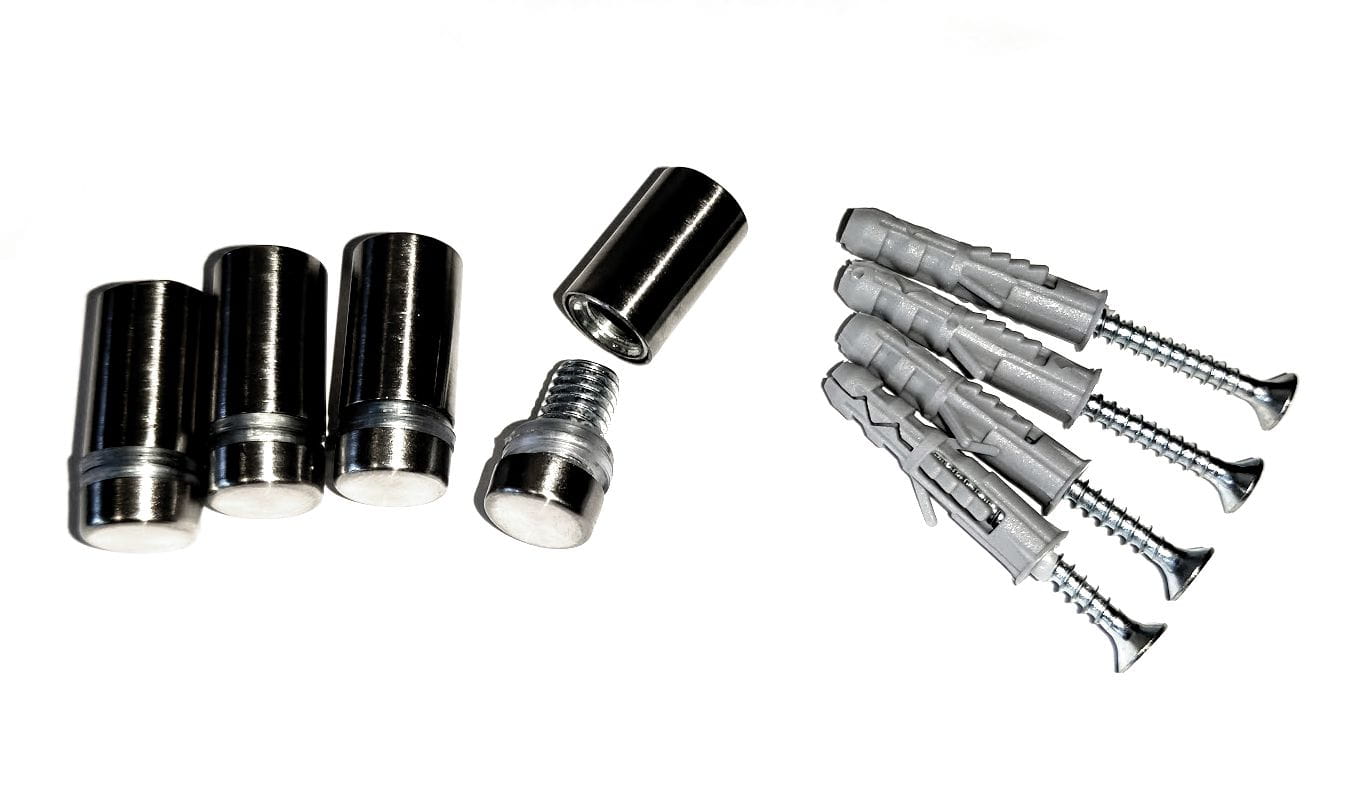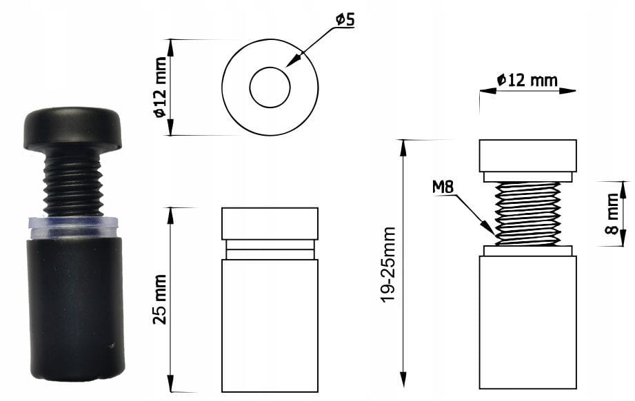 W zestawie 4 dystanse montażowe 12mm średnicy, 20mm długości ze stali + kołki