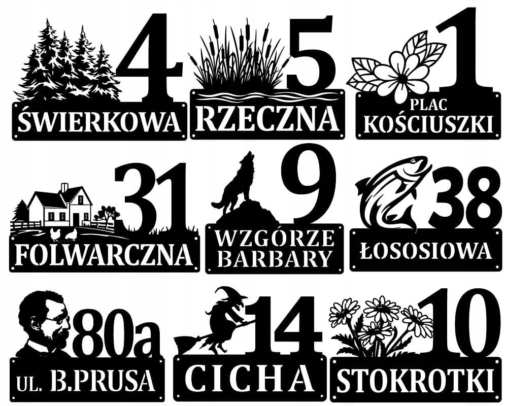 (np. dla ulicy Kwiatowej możemy dodać kwiatki, na dom hodowcy gołębi dodamy sylwetkę gołąbka, dla warsztatu samochodowego sylwetkę auta lub jakieś narzędzia)