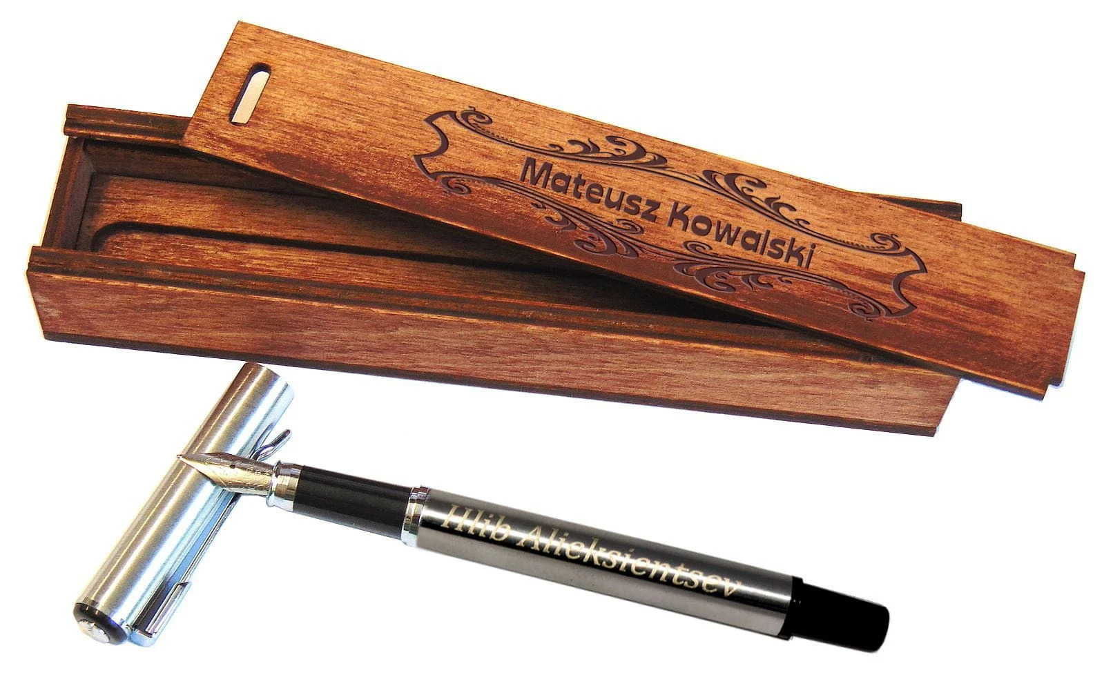 z wygrawerowanym imieniem i nazwiskiem przyszłego właściciela pióra.