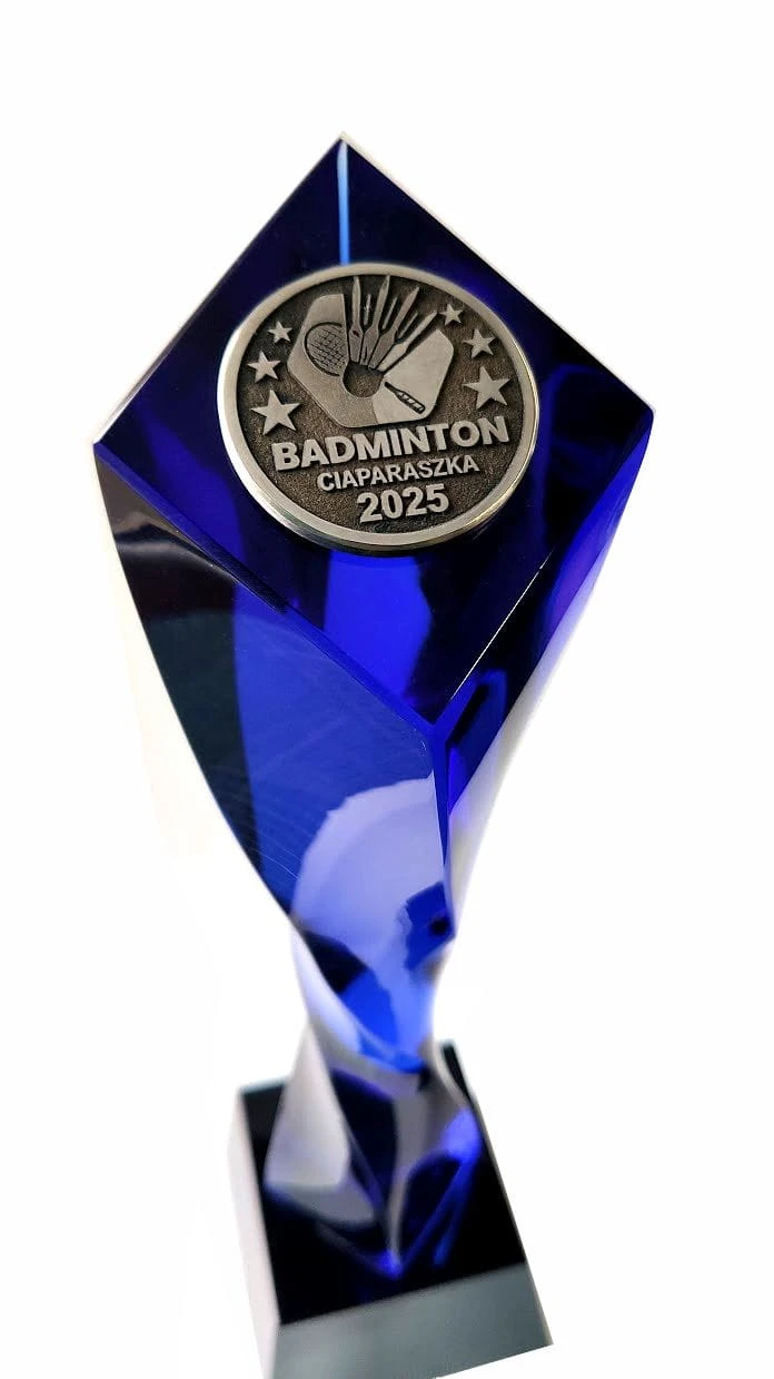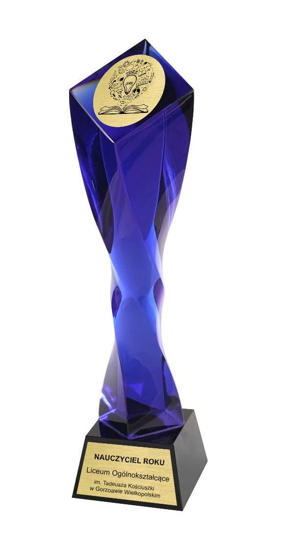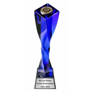 Oferta obejmuje bardzo efektowną z przepięknymi szlifami szklaną statuetkę z dowolnym grawerem.