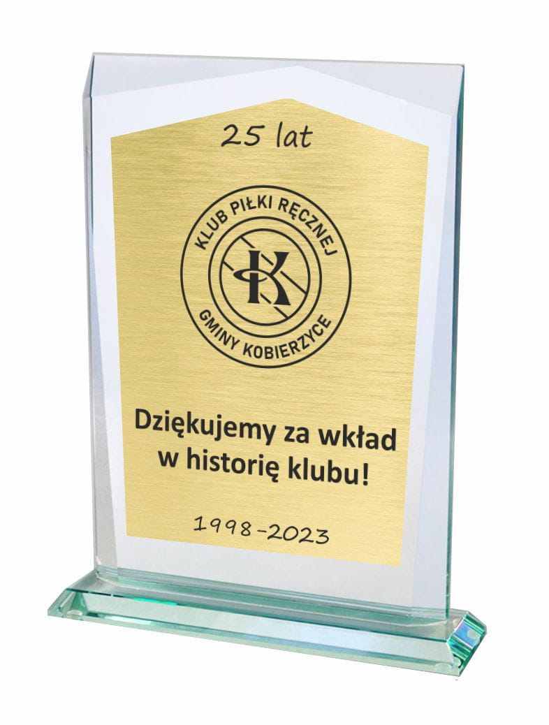 Oferta obejmuje bardzo efektowną z przepięknymi szlifami szklaną statuetkę z dowolnym grawerem.