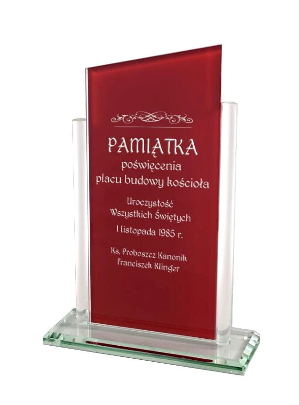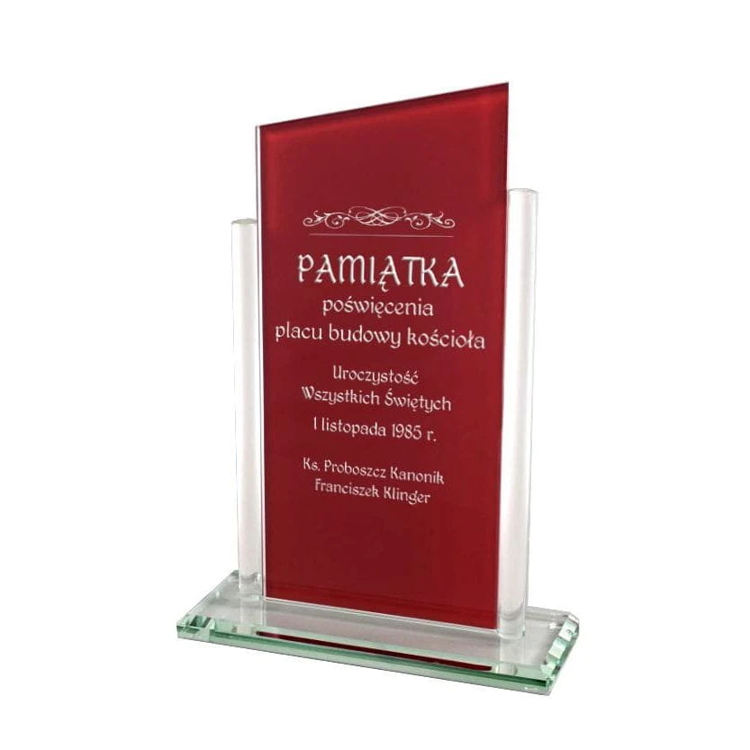 Oferta obejmuje lustrzaną szklaną statuetkę z dowolnym grawerem.