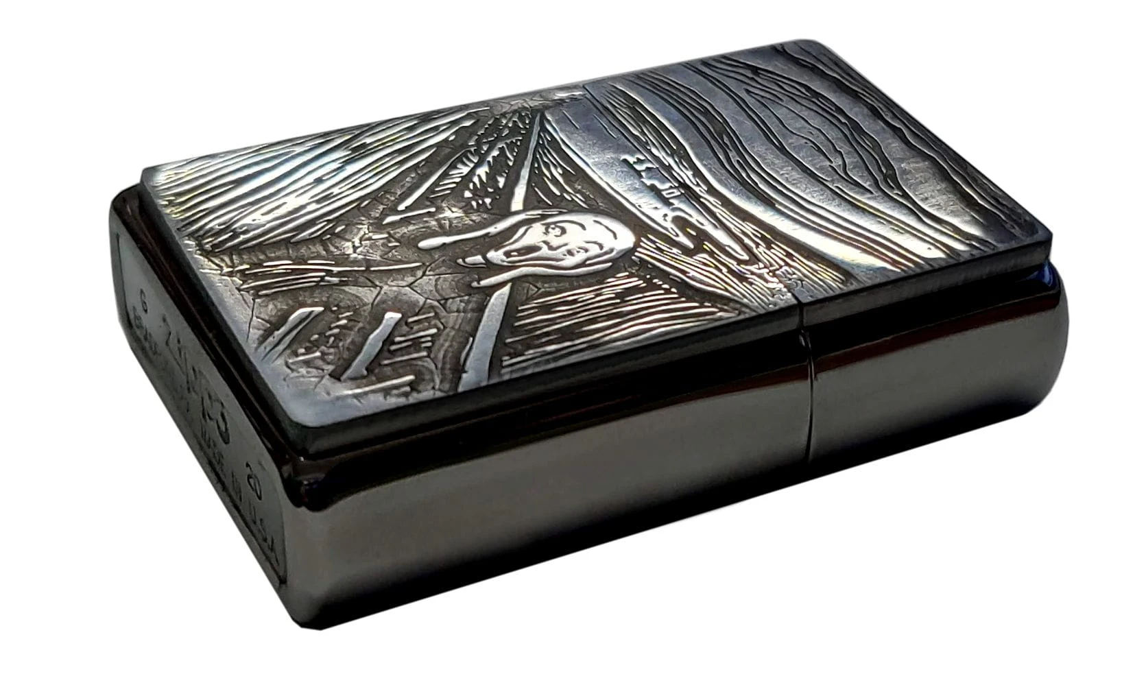 z głęboko grawerowanym emblematem przygotowanym na bazie obrazu Edvarda Muncha "Krzyk".